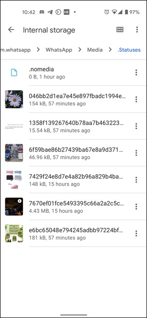 - در داخل پوشهی Statuses استوریهای مشاهده شده در 24 ساعت گذشته را خواهید دید. هر عکس یا ویدئویی را که میخواهید ببینید باز کنید.