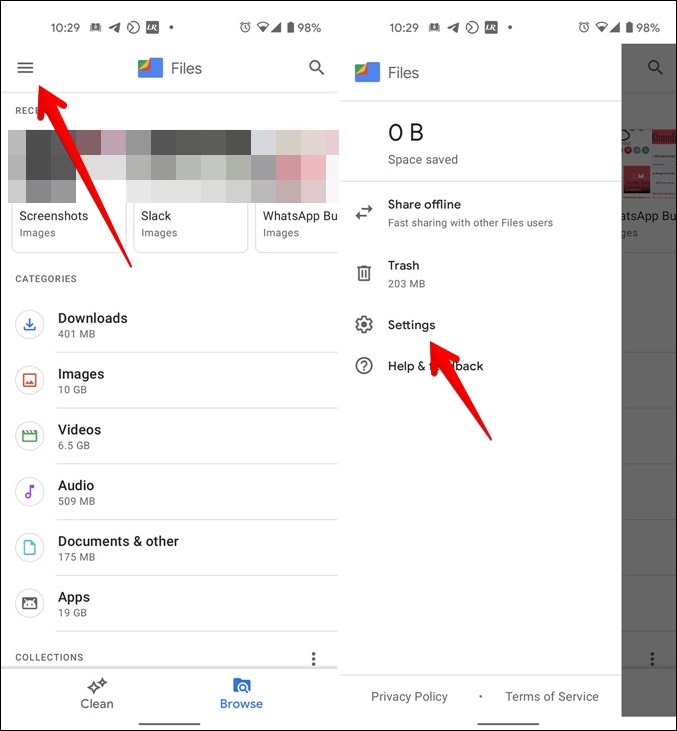 - هر برنامهی File Explorer را که در گوشی دارید باز کنید. برای مثال ما از برنامهی Files by Google استفاده میکنیم که یک برنامهی رایگان با محیطی کاربر پسند و بدون تبلیغات است.