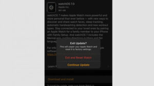 اگر پیغام تصویر بالا برای شما نمایش داده شد، گزینه Exit and Repair Watch را لمس و سپس اپل واچ خود را مجددا راه اندازی کنید. بعد از این کار، واچ او اس 7 برروی اپل واچ شما نصب می شود و شما می توانید از نو آن را با آیفون خود جفت کنید.