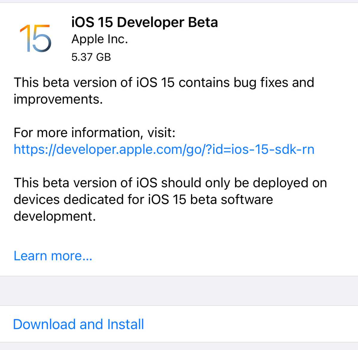 پس از ثبت نام و دانلود نمایه و فعال‌سازی آن، حال وقت بارگیری بتا است. Settings، General و Software Update را انتخاب کنید. حال باید ببینید که نسخه‌ی بتا عمومی iOS و یا iPadOS 15 برای بارگیری در دسترس است. اگر آن‌را مشاهده نکردید مطمئن شوید که پروفایل‌تان فعال و نصب شده است. گاهی ممکن است بعد از نصب پروفایل، نمایش بتا چند دقیقه طول بکشد. بنابراین خیلی عجله نکنید.