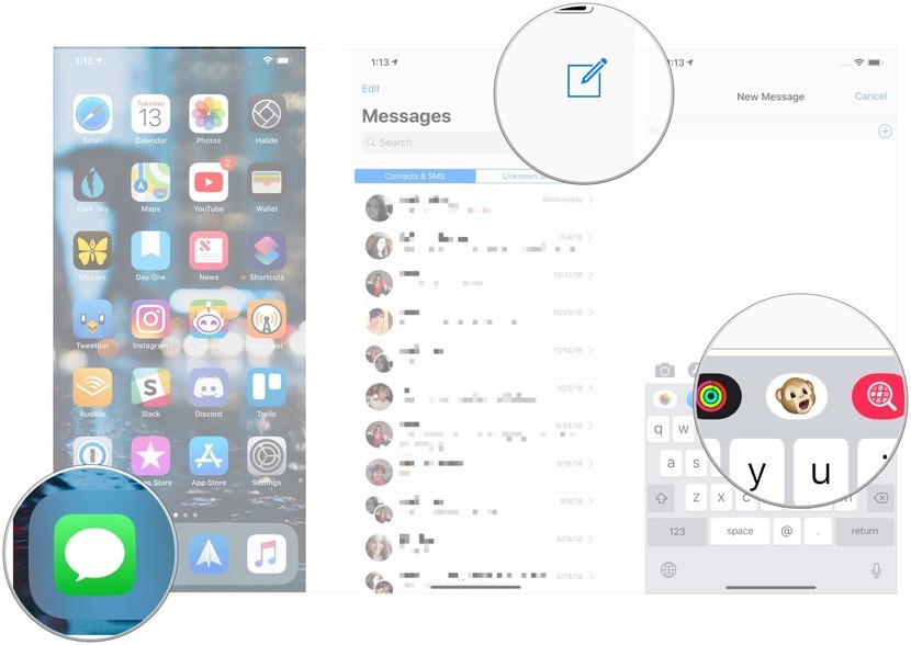 - ابتدا نرم افزار پیام رسان Messages را در آیفون یا آیپد باز کنید