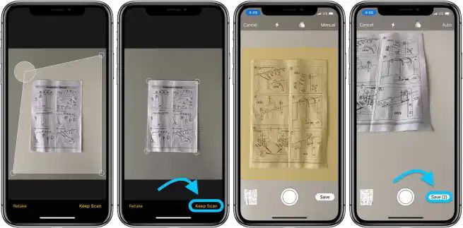- در صورت نیاز، لبههای سند را با کشیدن آنها تنظیم کنید و سپس روی دکمهي Keep Scan کلیک کنید.