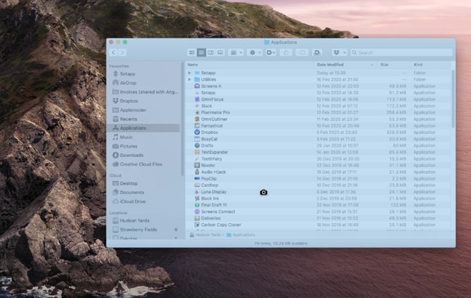 تفاوت این روش با روش قبلی در کلید 4 است. وقتی Command و Shift را نگه داشته و کلید 4 را میزنید، نشانگر ماوس تبدیل به علامت + میشود. حال میتوانید با کلیک و کشیدن ماوس، ناحیهی دلخواهتان را برای اسکرین شات انتخاب کنید.