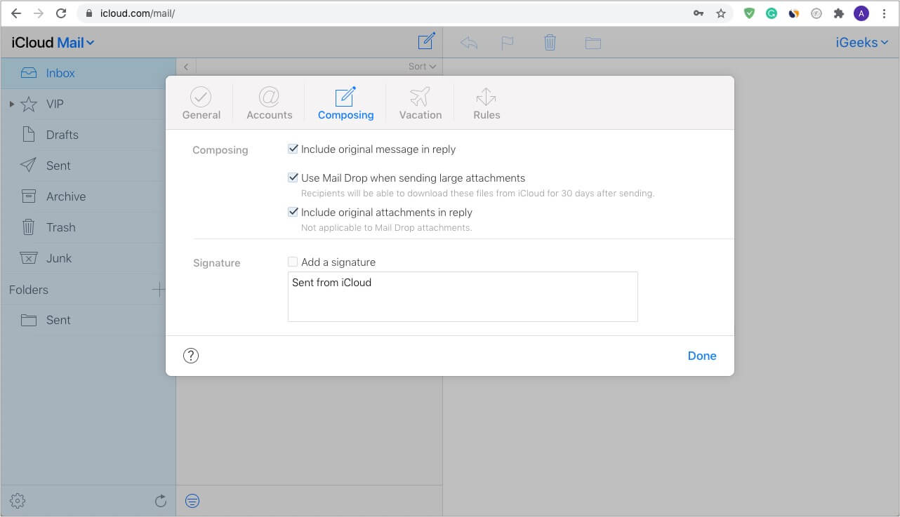 و گزینه Use Mail Drop when sending large attachments را فعال کنید.