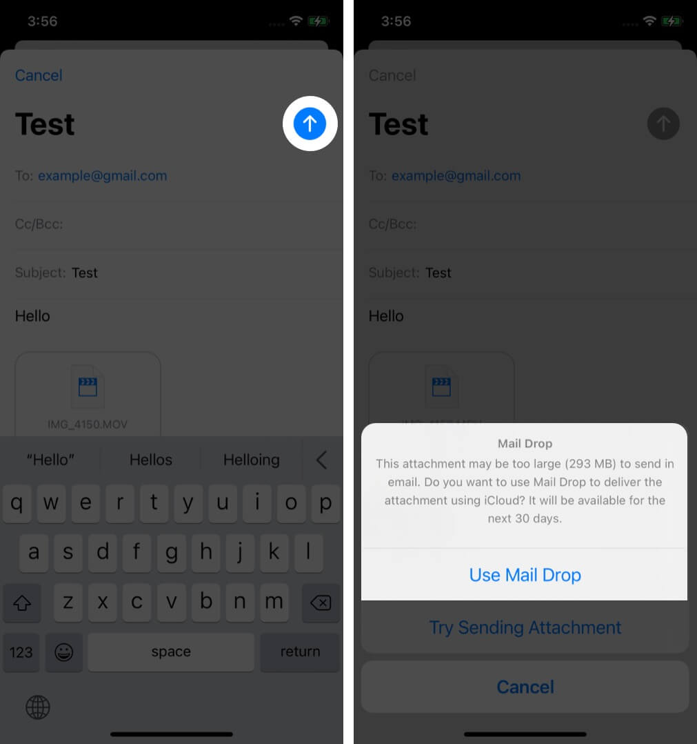 - لازم به ذکر است که اگر حجم فایل کمتر از ۲۰ مگابایت باشد نیازی به استفاده از Mail Drop نیست.