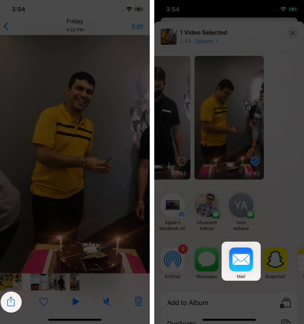 با استفاده از Air Drop میتوان ویدئوهای حجیم را از آیفون خود به دستگاههای iOS و یا macOS موجود در همان نزدیکی، منتقل کرد. روش کار به شرح زیر است: