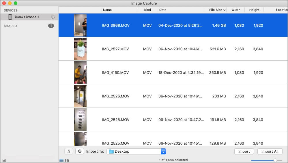 - کمی صبر کنید تا تمام عکسها و ویدئوها در برنامه Image Capture نمایش داده شوند.
