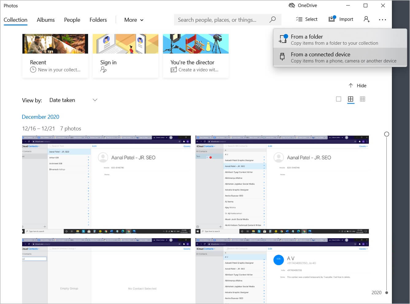 - در برنامه مذکور بر روی Import و سپس From a connected device کلیک کنید.