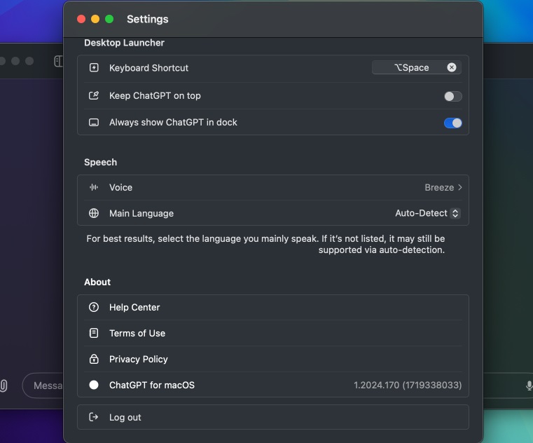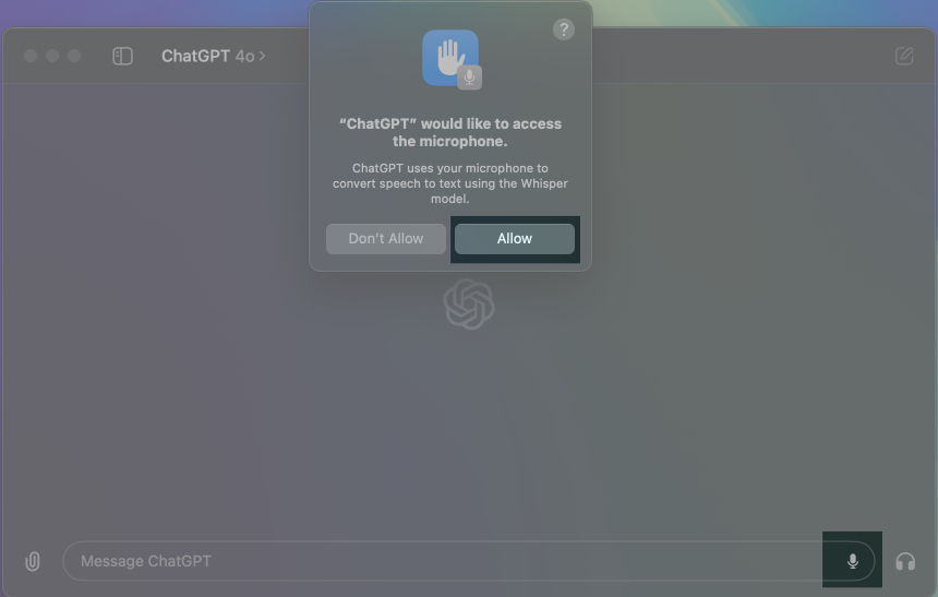 ایجاد یک مکالمه صوتی با برنامه چت جی پی تی در مک