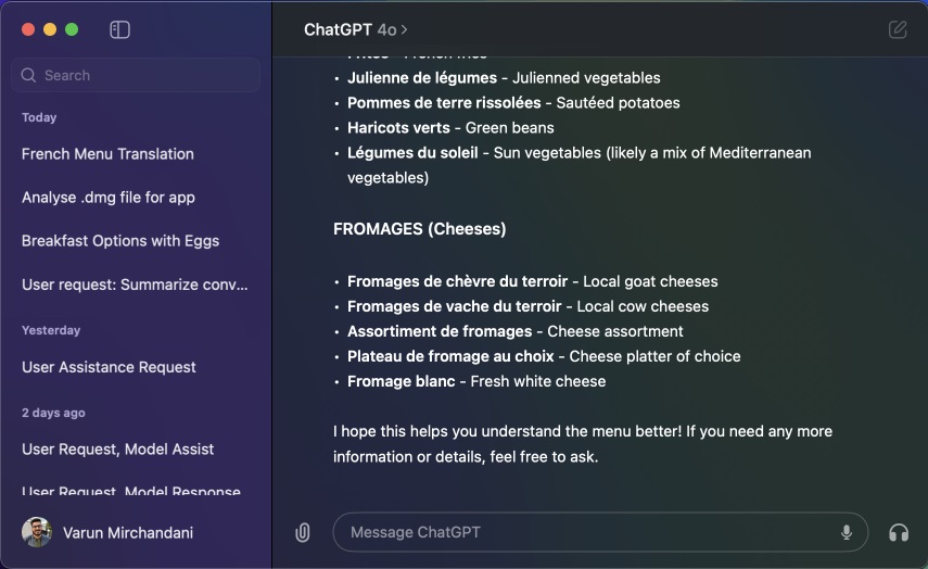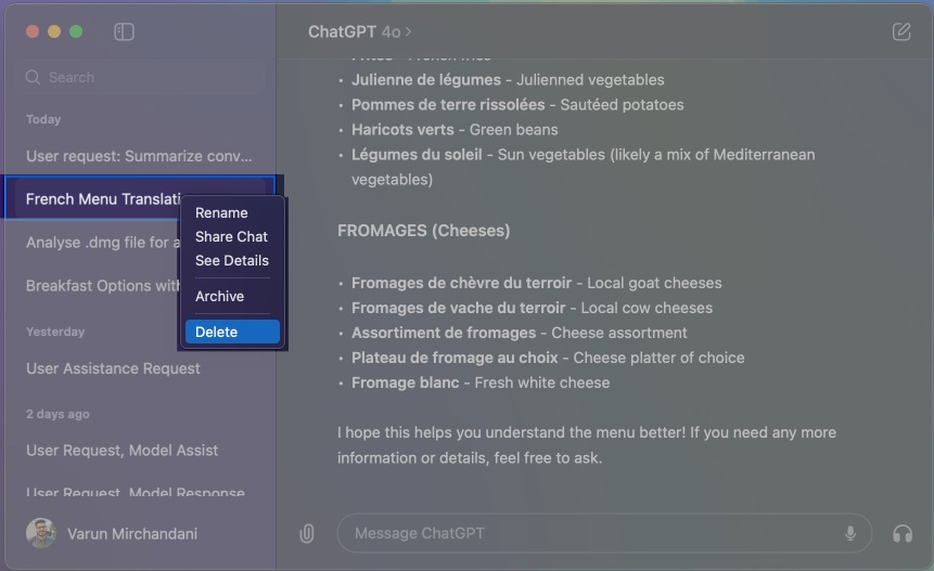 نحوه استفاده از برنامه چت جی پی تی در مک