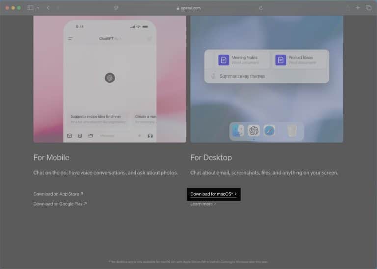 1. به صفحه دانلود ChatGPT Mac app بروید.