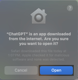 1. پس از وارد کردن پسورد خود، دوباره برنامه چت جی پی تی در مک را راه اندازی کنید.