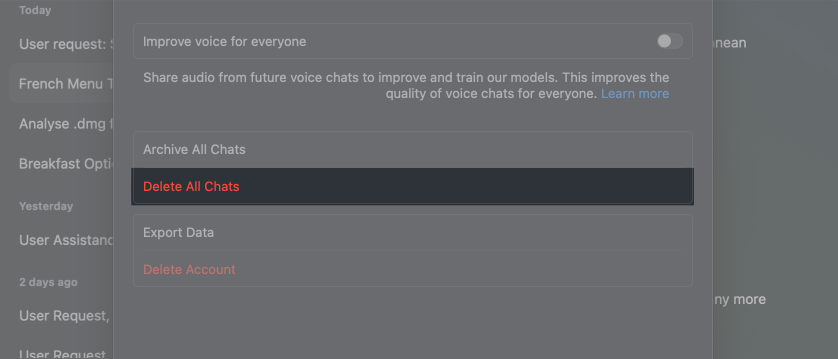 برای پاک کردن تمامی تاریخچه مکالمات و گفتگوی شما با چت جی پی تی در مک، به روش زیر عمل کنید: