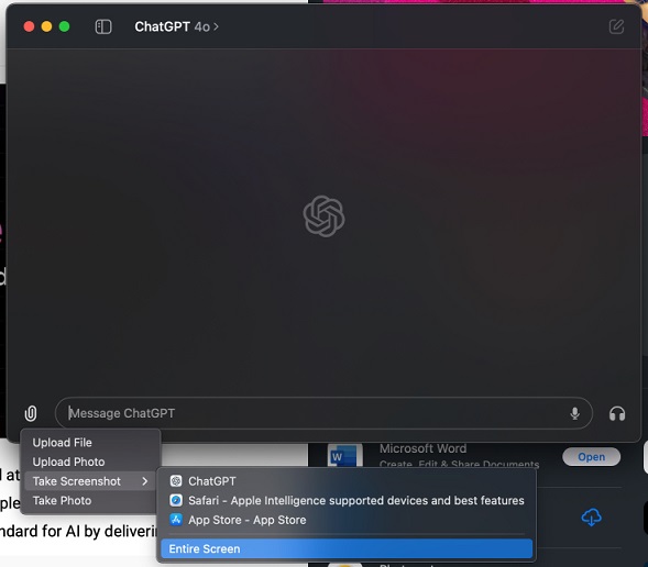 اسکرین شات در ChatGPT و پرسیدن سؤال