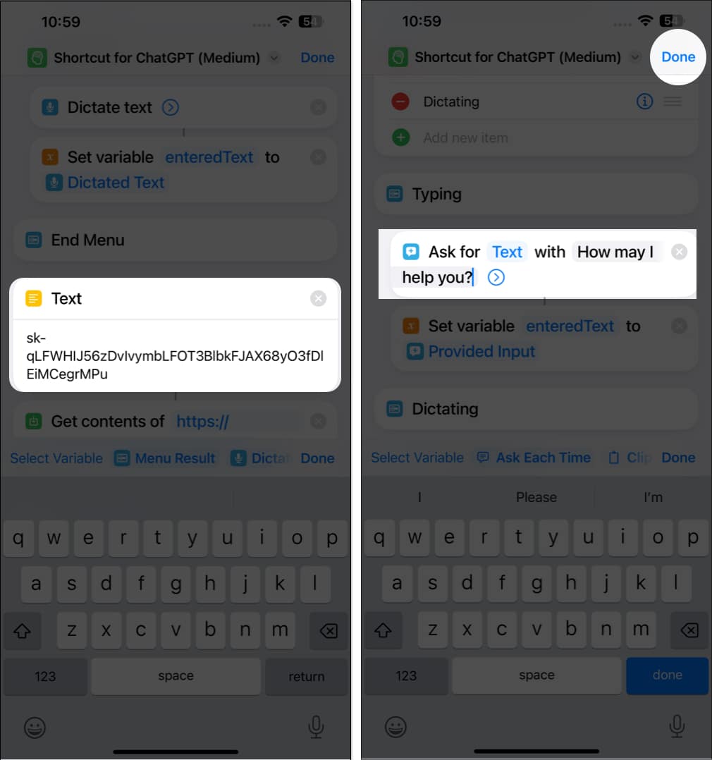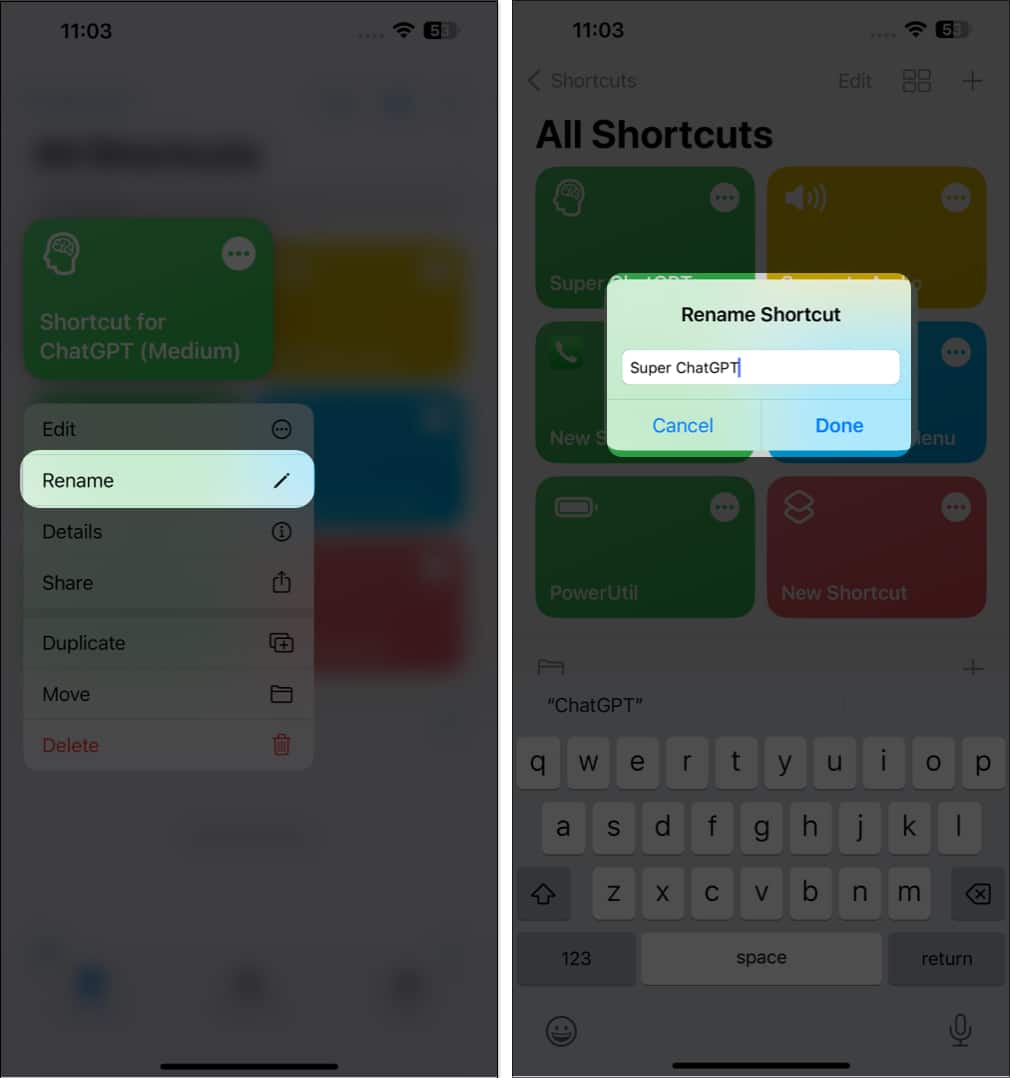 - یک نام برای فراخوانی شورتکات در سیری وارد کنید. (در اینجا Super ChatGPT نامیده شده است.)
