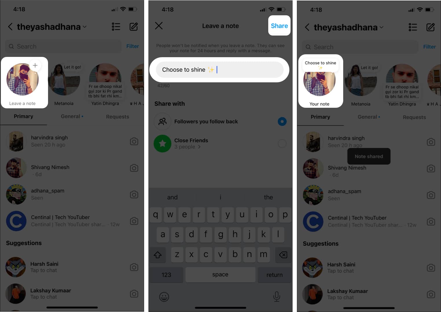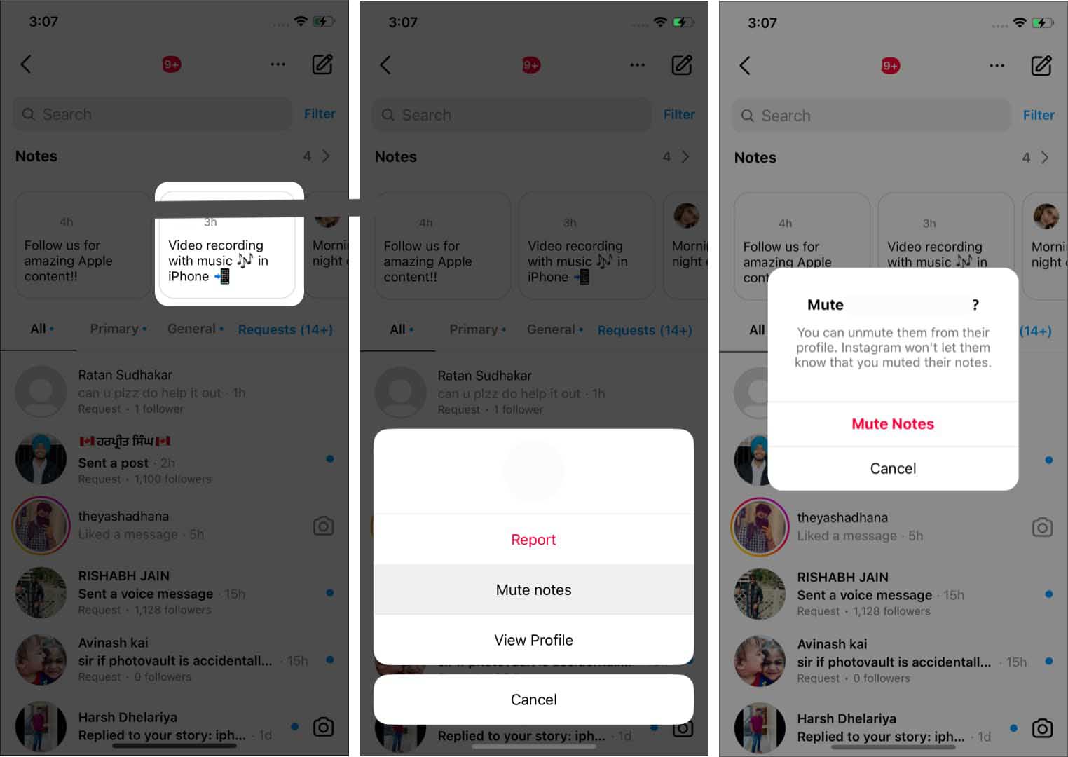 بی صدا کردن نوت اینستاگرام برای افراد از طریق Notes
