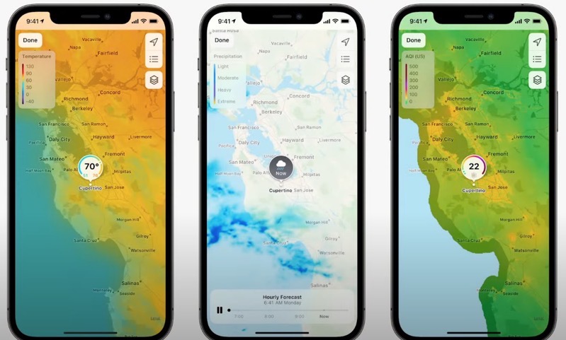 اکنون این ویژگی (حداقل در ایالات متحده) به برنامهی Weather اضافه شده است. گفته میشود که عناصر خاصی مانند نقشههای باکیفیت هوایی برای مناطق دیگر نیز قابل مشاهده خواهند بود. با این حال تا زمانی که iOS 15 رسما عرضه شود و توسط میلیونها کاربر مورد استفاده قرار گیرد از دقت بارندگیها آگاه خواهیم شد.