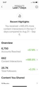 و در نهایت باید گفت که کاربران حساب‌های بیزینس می‌توانند داده‌های مربوط به استوری‌های خود را مشاهده کنند. برای مشاهده Story insights ابتدا به بخش Insights رفته و گزینه Content You Shared در صفحه Recent Highlights را انتخاب کنید.