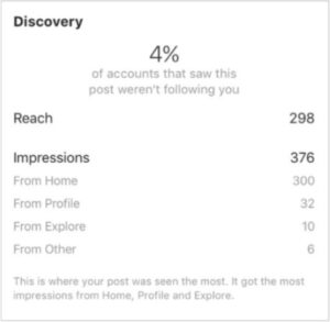 داده‌های Discovery همچنین به شما میزان reach را نشان می‌دهند؛ میزان reach تعداد پروفایل‌هایی است که پست شما را دیده‌اند.