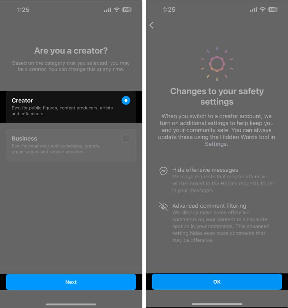 - پس از انتخاب Creator، به ترتیب گزینههای Next و OK را انتخاب کنید.