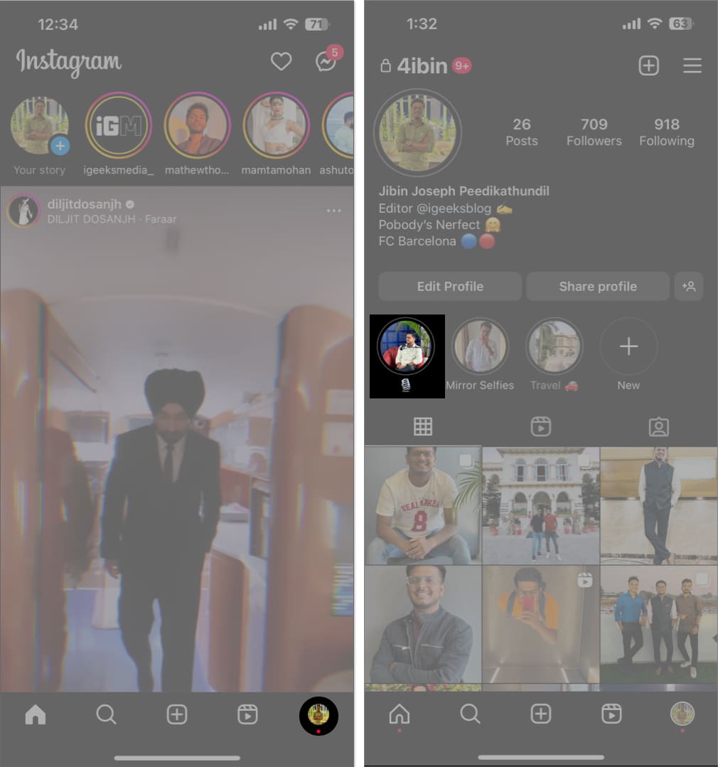 - اینستاگرام را اجرا کنید و به پروفایل خود بروید.