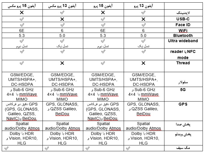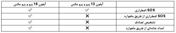 در مقایسه آیفون 13 پرو و آیفون 15 پرو از نظر ایمنی، شاهد سه ویژگی ایمنی پیشرفتهتر در 15 پرو هستیم که در جدول زیر مشاهده میکنید.