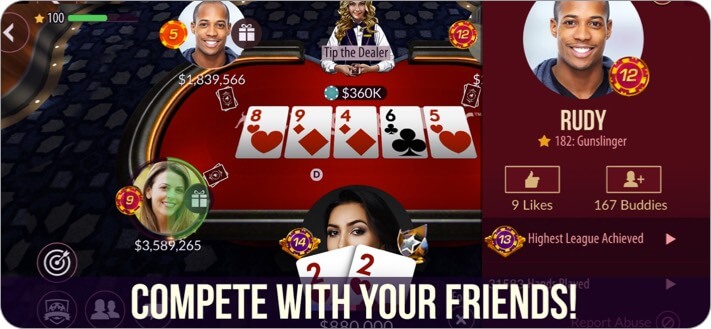 وقتی بازی را شروع می کنید مقدار 60,000 چیپ رایگان دریافت و با آن ها پوکر واقعی بازی می کنید. شما می توانید مود 9 نفره کلاسیک را انتخاب کنید و یا به سراغ مود 5 نفره، که سریعتر تمام می شود، بروید و از بازی پوکر با پلیرهای سراسر جهان لذت ببرید.