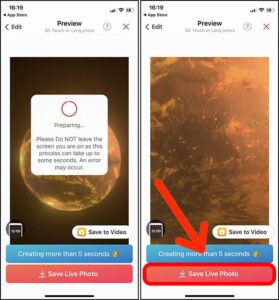 3. با لمس این دکمه، پروسه تبدیل فیلم به والپیپر متحرک ایفون شروع می شود. بعد از اتمام پروسه، دکمه Save Live Photo (در پایین صفحه) را لمس کنید تا لایو فوتو برای شما ذخیره شود.