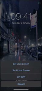 6. و در پایان گزینه Set Lock Screen را انتخاب کنید و کار تمام است! ممکن است لود شدن این فایل حجیم ویدئویی برای آفون شما اندکی زمانبر باشد اما در نهایت لایو فوتو شما به عنوان تصویر متحرک پس زمینه تنظیم خواهد شد.