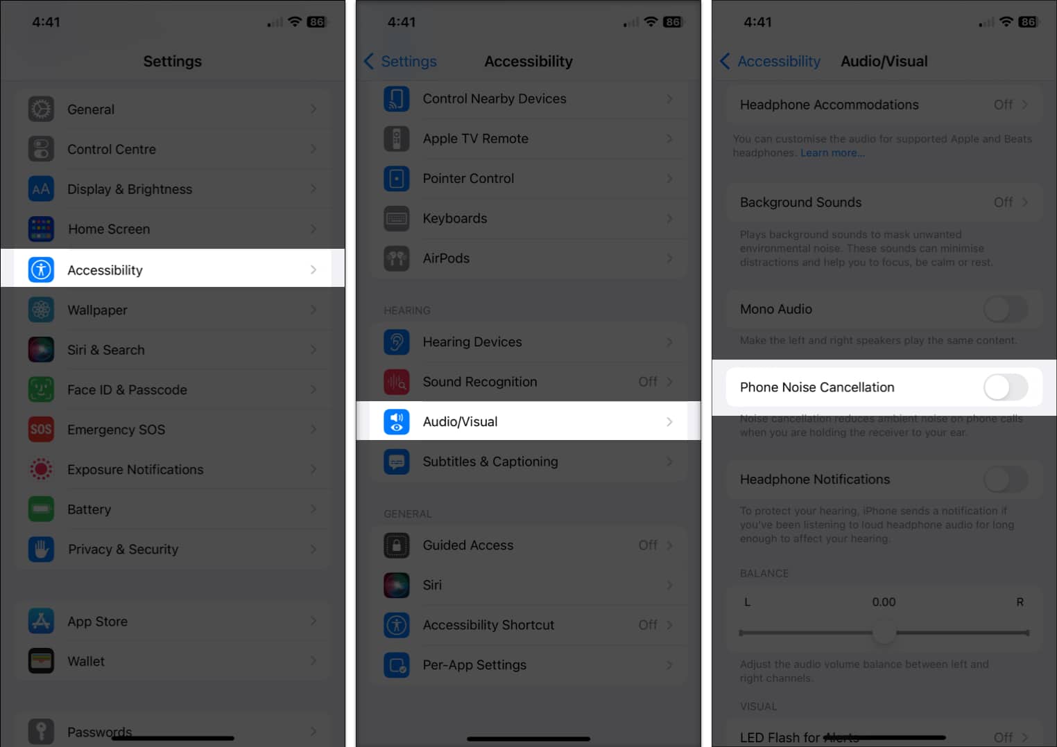 - گزینه Phone Noise Cancellation را خاموش کنید.