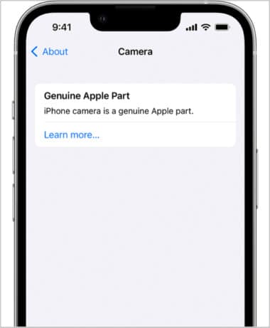 اگر تعمیرکار آیفون شما از قطعات اصلی استفاده کرده باشد، گزینهی Genuine Apple Part را مشاهده می کنید. می توانید با لمس قطعهی مورد نظر اطلاعات بیشتری مثل تاریخ دقیق تعمیر را نیز مشاهده کنید.