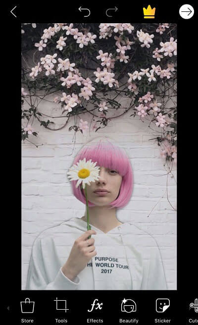 برچسب برش خورده را انتخاب کنید. برچسب به پس زمینه جدید اضافه خواهد شد.از این قسمت شما می توانید تصاویر را با هم ترکیب, روشنایی و وضوح  آن هارا تغییردهید و…