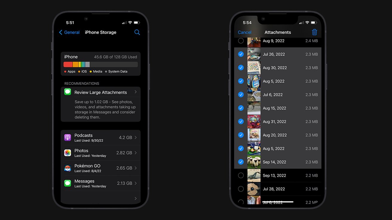لازم به ذکر است که در این مواقع، با حذف پیوست‌هایی که در برخی مکالمات وجود دارد مانند عکس و ویدئو، می‌توان فضای زیادی از حافظه ذخیره سازی آی مسیج را آزاد کرد.