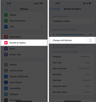 - Settings را در دستگاه خود اجرا کنید و بر روی Sounds & Haptics کلیک کنید.