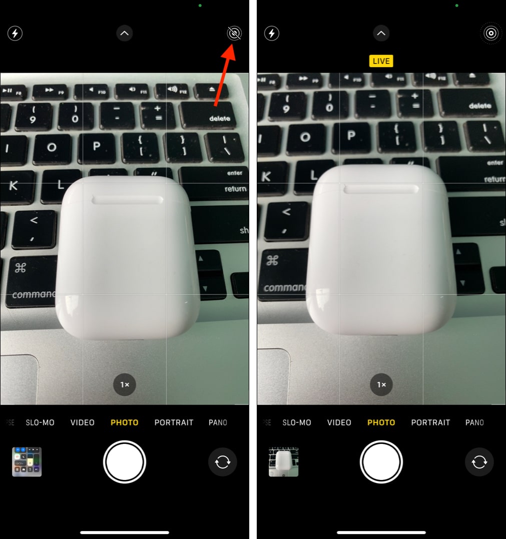 - در Camera App گزینه مربوط به Live Photo را فعال کنید.