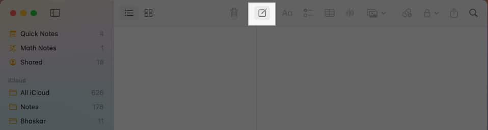 - برنامه Notes را در مک باز کنید.