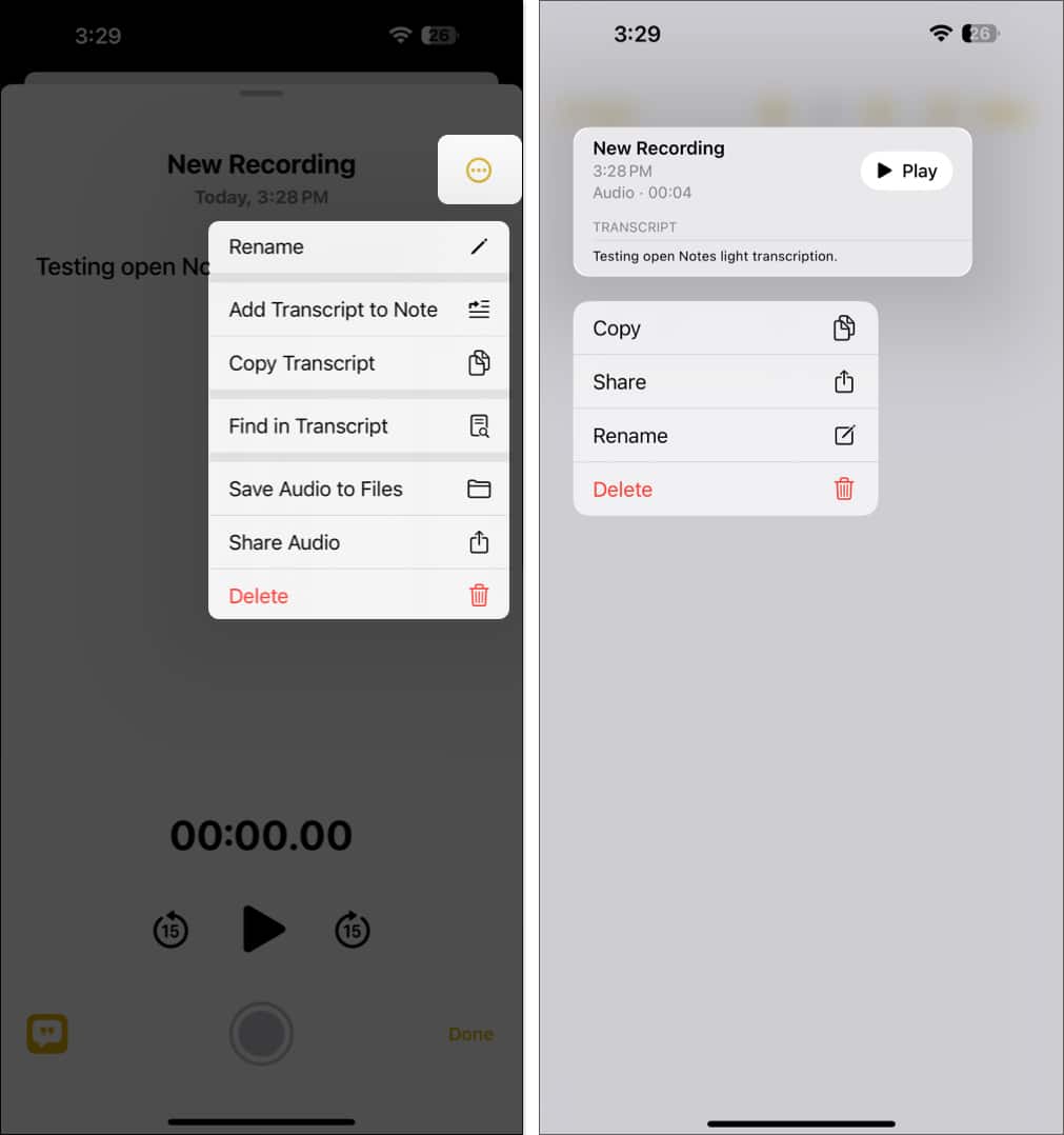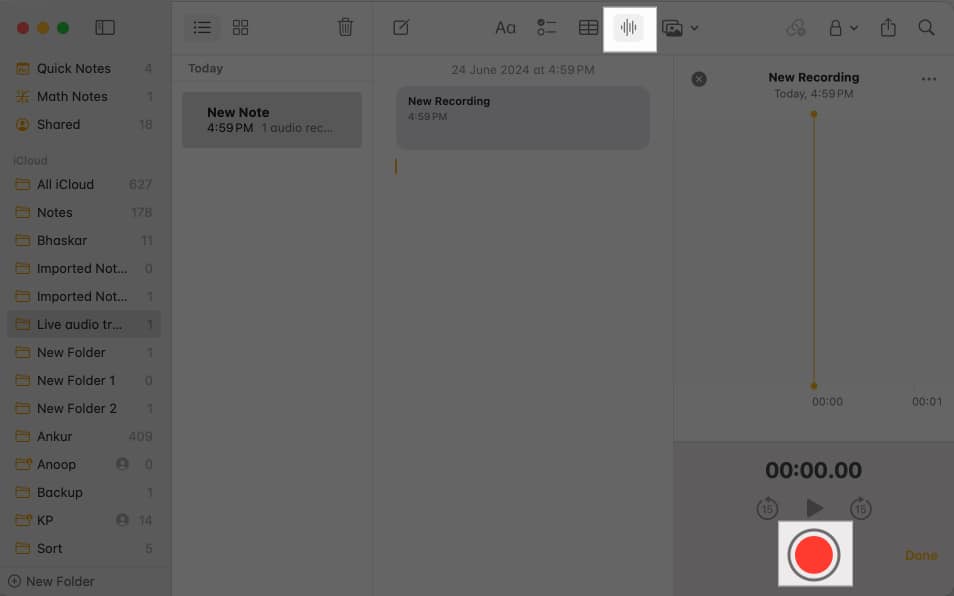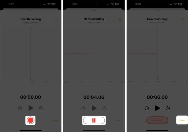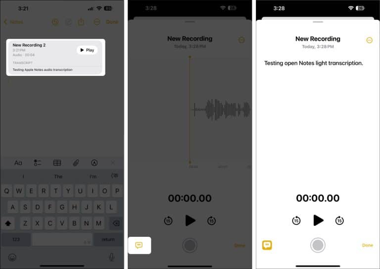 - برای پایان دادن به ضبط صدا و برگشت به یادداشت، روی Done ضربه بزنید.