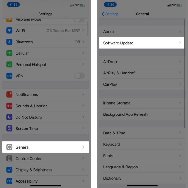 • به سادگی به Settings و بعد General بروید و روی Software Update ضربه بزنید.