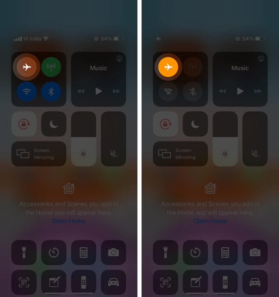 یکی از ساده‌ترین راه‌ها برای راه‌اندازی مجدد اینترنت سلولار آیفون، روشن و خاموش کردن حالت هواپیما است. به راحتی به کنترل سنتر آیفون رفته و Airplane mode را روشن کنید. برای مدت یک دقیقه صبر کنید و آن را خاموش کنید و منتظر اتصال مجدد آیفون خود باشید.