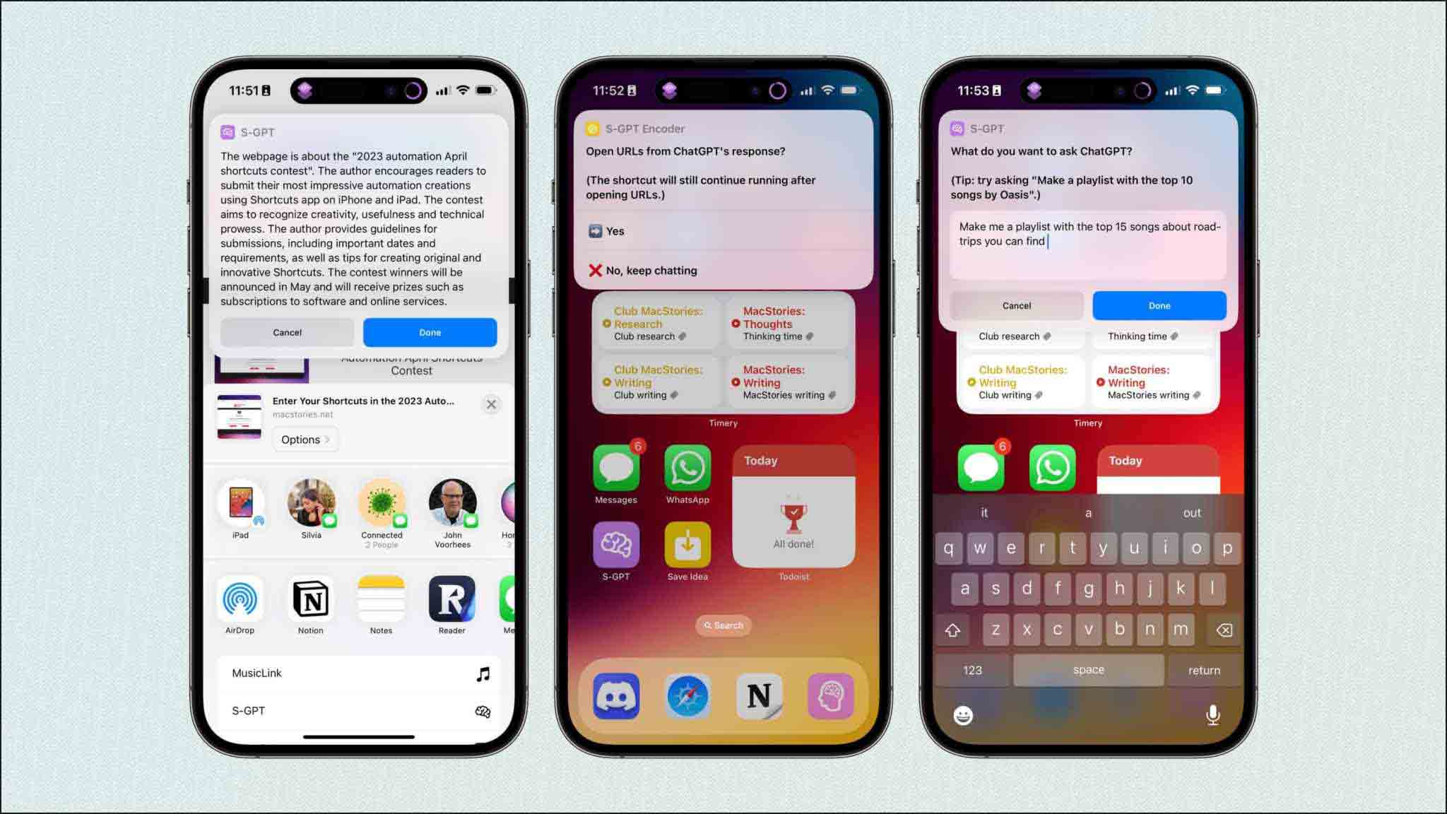 Federico Viticci با الهام از نحوه ادغام ویندوز و چت جی پی تی توسط مایکروسافت، توانست شورتکات اتصال چت جی پی تی به برنامهها را در آیفون ایجاد کند. این امر به حدی واضح است که در یکی از پستهای وبلاگ خود مینویسد: