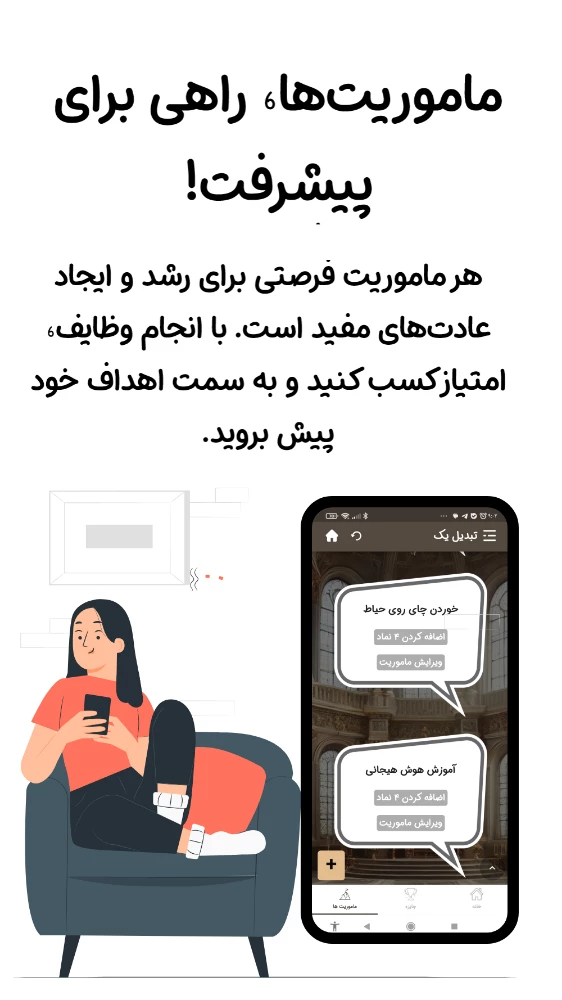 کافی است این اپ را از اپ استور های ایرانی مانند اناردونی دانلود کنید، ماموریتهای خود را تعریف کنید و برای هر کدام چند جایزه در نظر بگیرید. آن وقت خواهید دید که چقدر راحتتر میتوانید عادتهای جدید بسازید