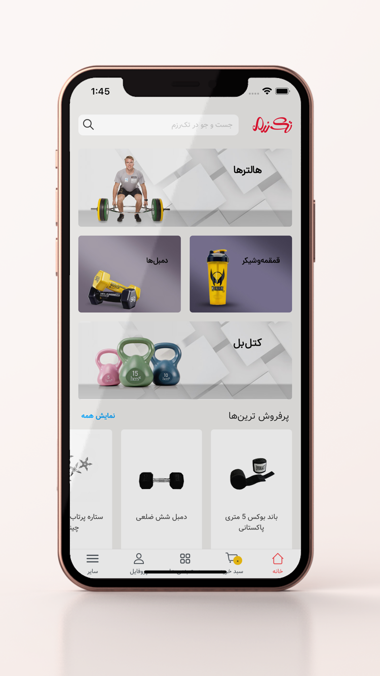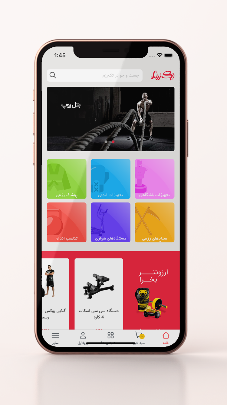 برای شما که به سلامتیت اهمیت میدی و ورزش میکنی و دوس داری برای تهیه وسایل مورد نیازت، یه خرید آسون رو تجربه کنی و به راحتی از بین هزاران کالای متفاوت ورزشی بهترین انتخاب رو برای خودت و خانوادهت داشته باشی، اپلیکیشن فروشگاه اینترنتی تک رزم رو از دست نده. توی اپلیکیشن ما، زودتر از بقیه، از تخفیفهای هفتگیمون باخبر میشی و میتونی کلی جنس رو ارزونتر بخری.