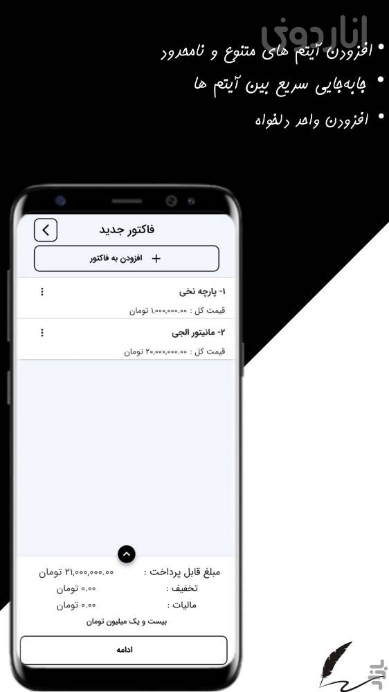 اپلیکیشن فاکتور پر یک برنامه صدور فاکتور به صورت ساده و کامل است بدون محدودیت فاکتور بزن!!!
