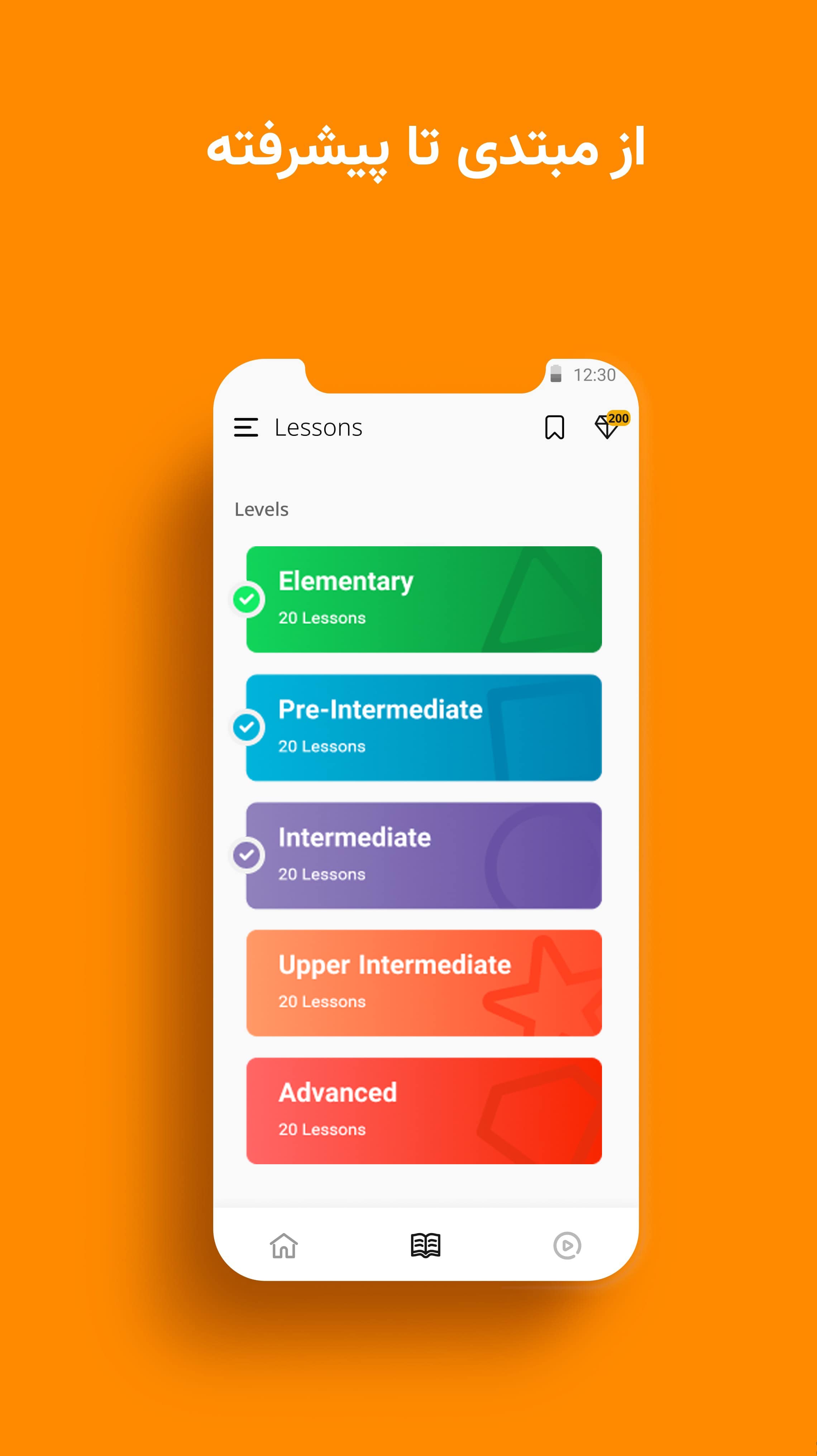 زبانیاد در بخش درسها از ۵ سطح تشکیل شده: