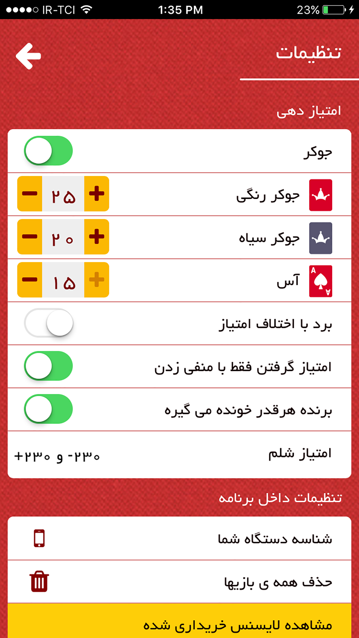 برنامهای که میبینیم نسخهی جدید شلمنویس است. با دانلود این برنامه از اپ استور ایفون اناردونی میتوانیم از محیط زیست حفاظت کنیم. میپرسید چهطور؟ تنها با مصرف کمتر کاغذ! میپرسید این برنامه چه امکاناتی دارد؟ پشتیبانی از بازی با جوکر پشتیبانی از 2 حالت محاسبه اتوماتیک و دستی انواع حالات امتیاز دهی شامل آس 15 و 10 امتیازی مشاهده دست های قبلی ذخیره عکس یادگاری هنگام بازی به اشتراک گذاشتن نتیجه بازی لیست بازی های گذشته و ....