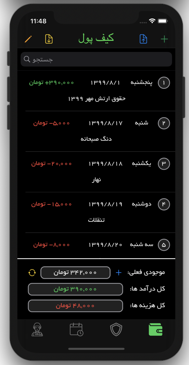 - قابلیت جستجو در نگهبانی ها و درآمد و هزینه