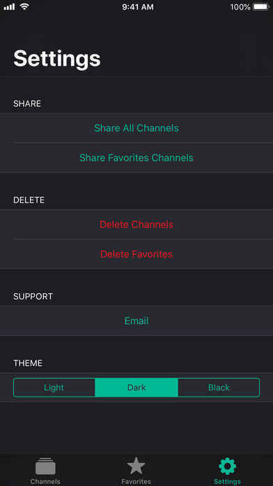It's easy to import a list of channels with the app. It supports import from different apps like the Mail or Dropbox and it also supports direct import from a Pastebin link.