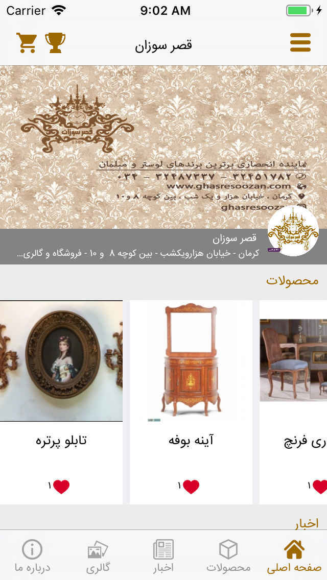 به پاس همراهی شما بزرگواران و به منظور ارائه بهتر خدمات به همشهریان،گالری قصر سوزان محصولات مبلمان، که تکمیل کننده مجموعه گالری میباشد را راه اندازی و نمایندگی برند های معتبر کشور را اخذ و مبلمان را نیز به محصولات خود اضافه نمود.